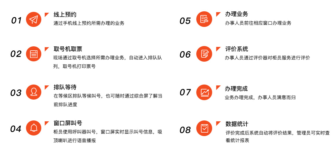 通過排隊(duì)叫號系統(tǒng),讓辦事人員有序排隊(duì)等候,避免窗口擁擠和排隊(duì),并且能合理的安排窗口服務(wù),減少辦事人員的等候時(shí)間,合理的安排辦理各種業(yè)務(wù),提高綜合管理水平。廣泛應(yīng)用于政務(wù)大廳、銀行、醫(yī)院(分診、藥房、體檢等科室)、街道服務(wù)中心、辦事大廳、營業(yè)廳、派出所、工商局、稅務(wù)局、社保局、車管所和交管局等場景。