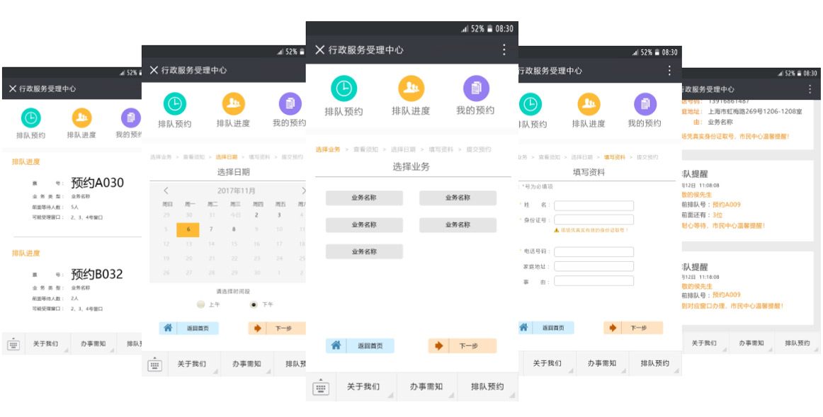 辦事群眾可通過微信公眾號進(jìn)行業(yè)務(wù)辦理、預(yù)約取號、資料填寫、排隊(duì)進(jìn)度查詢等功能。